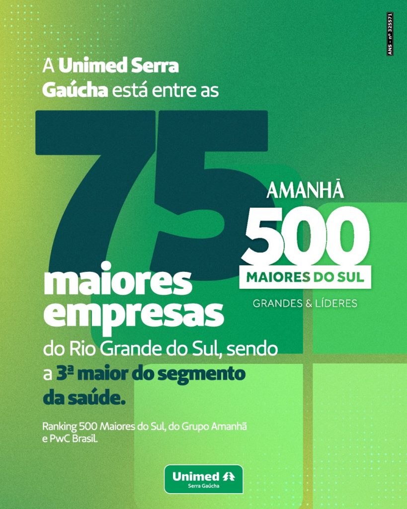A Unimed Serra Gaúcha está entre as 75 maiores empresas do Rio Grande do Sul! 14 de outubro de 2025 / Deixe um comentário / Unimed