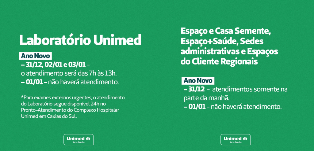 Devido ao período de festas de final de ano, alguns serviços vão funcionar em horários alternativos. Confira abaixo: