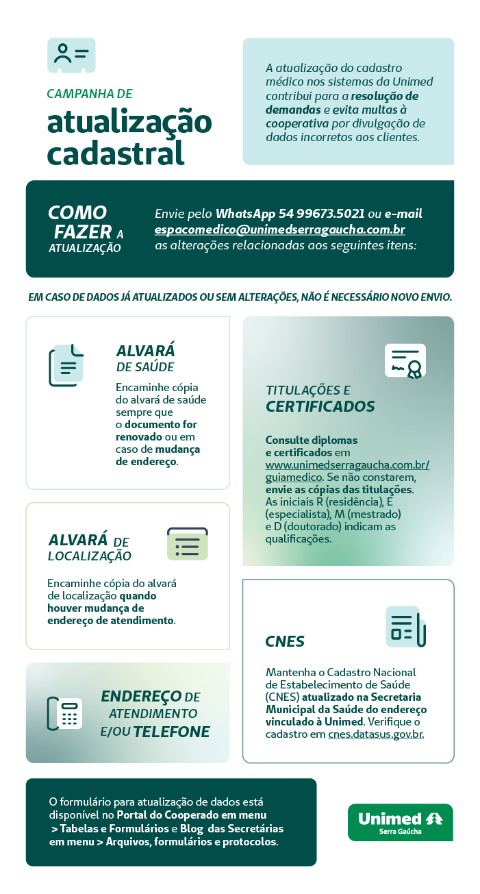 O envio dos dados atualizados do consultório é necessário apenas se houve alguma alteração nos últimos seis meses.