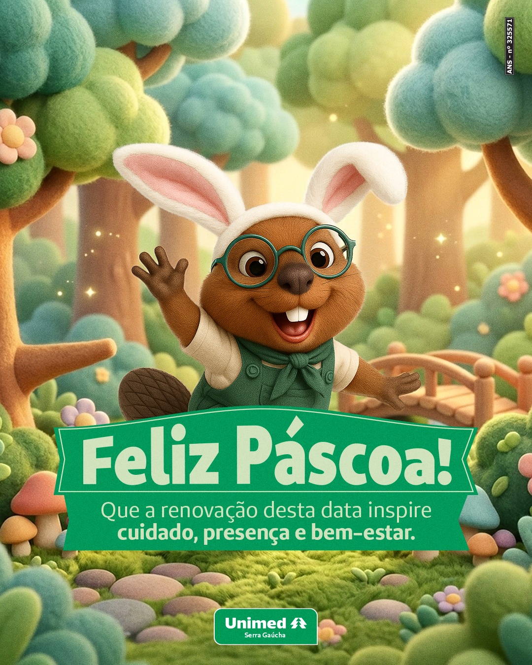 A Páscoa nos convida a desacelerar, valorizar os encontros e olhar com mais atenção para o que realmente importa. Que não faltem momentos de carinho, saúde e tranquilidade. A Unimed Serra Gaúcha, e o Otávio desejam uma Páscoa especial para você e sua família. 💚