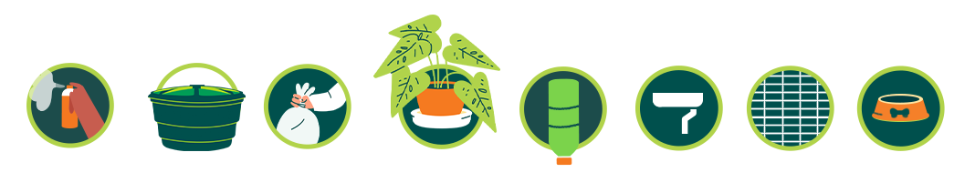 - Mantenha garrafas e outros recipientes que podem acumular água virados para baixo